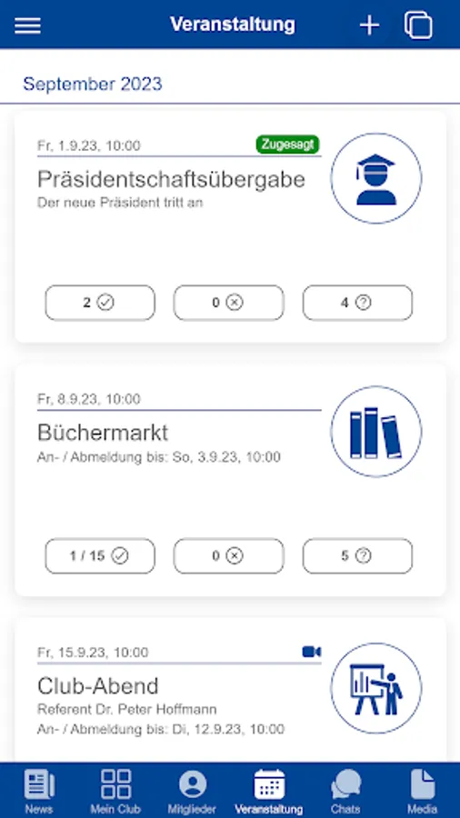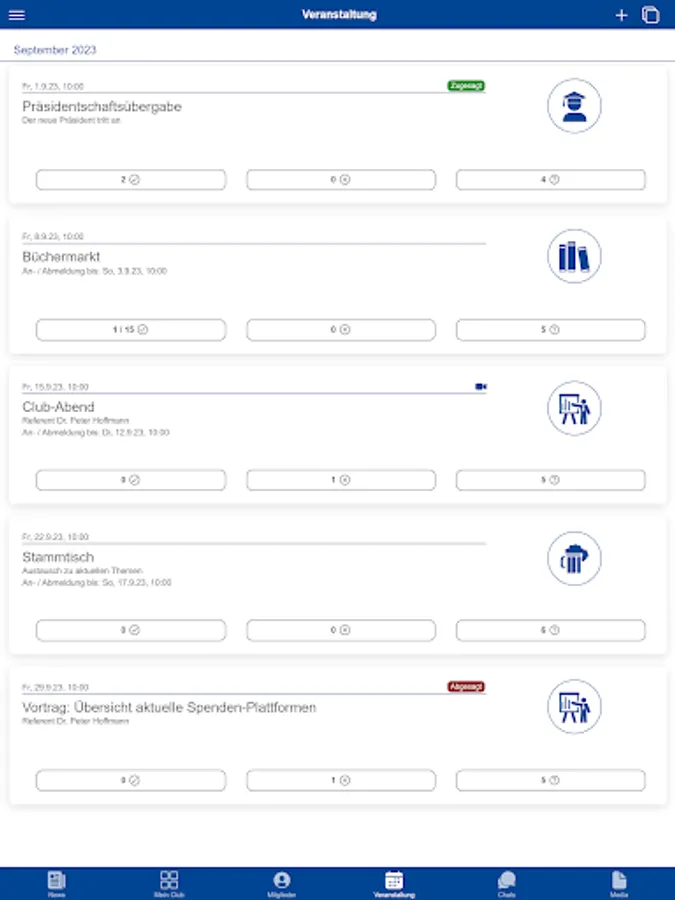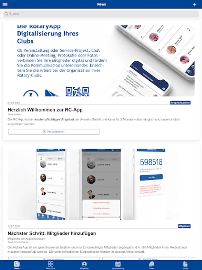 Organize your Rotary Club fully digitally: communication of news and member magazines, management of all member data, creation of project groups, organization of events with confirmations and cancellations, individual, group and organizational chat, provision of documents, public photo pinboard and much more. ..