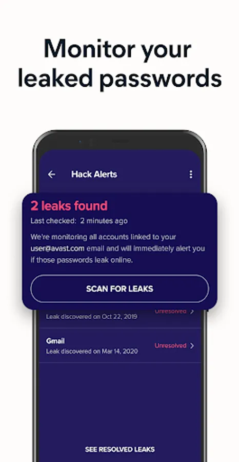 ■ Hack Alerts: See which of your passwords have been leaked with a quick and simple scan, so you can update your login credentials before hackers infiltrate your accounts.