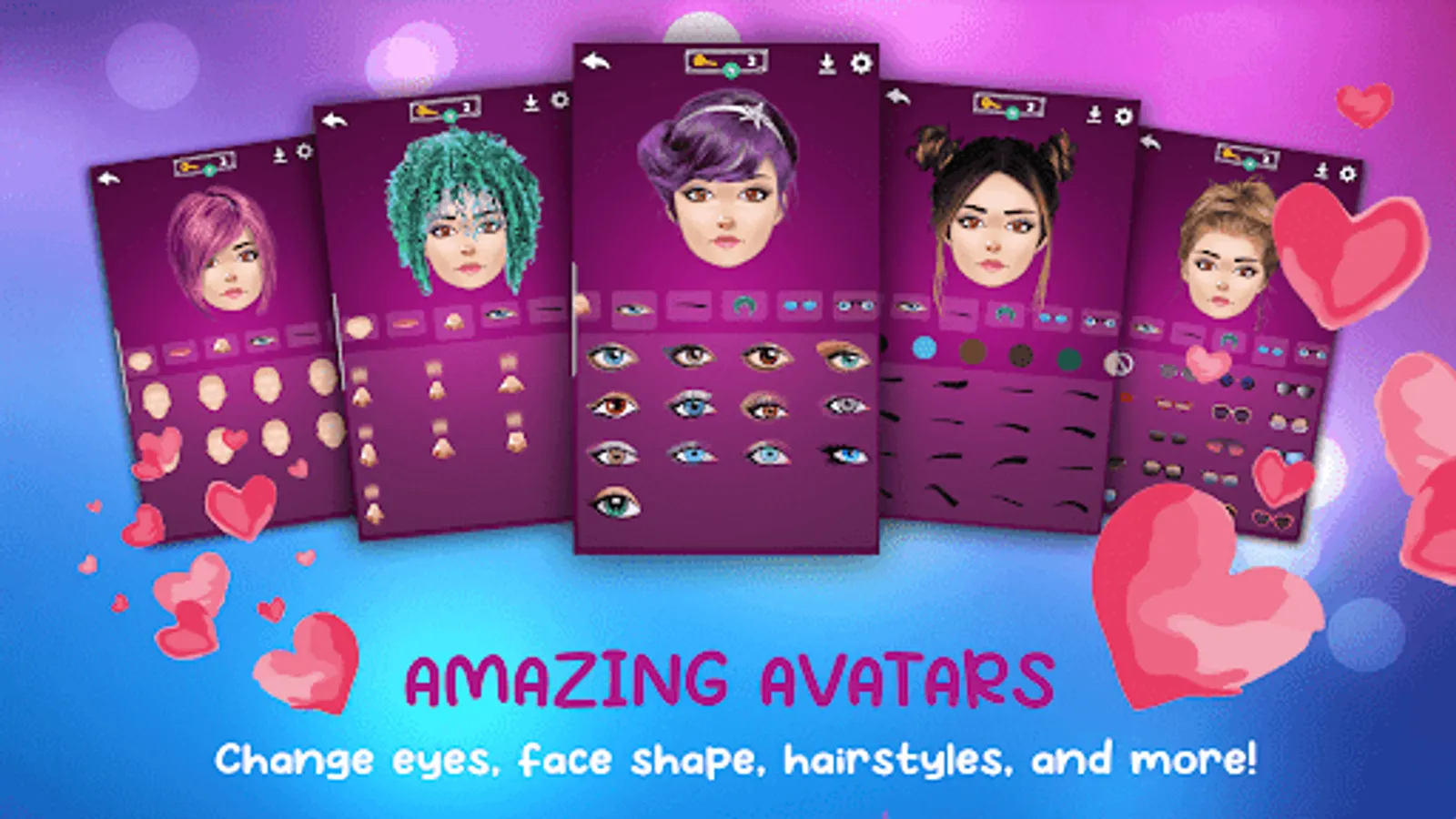 If you are a creative person, you will definitely love to customize characters in this game for girls and boys. Not only can you make your character from the start, but you can also share them like picture emojis and personalized avatar stickers. Create your own character by choosing nose shape, eyes, hair and more! Create your pics in this cute avatar creator completely free of charge. You can also save all the anime characters that you've made and you can always make more with this avatar face maker! Change the design anytime you want – choose new colors and shapes, transform face shape in just a tap!