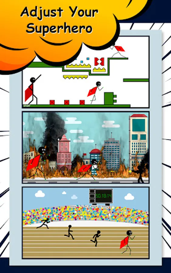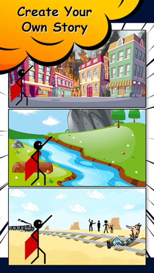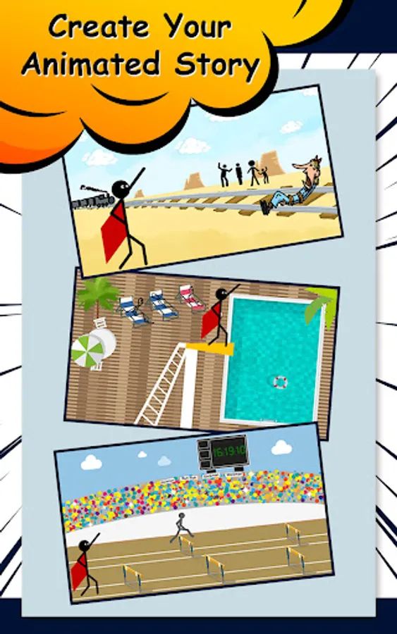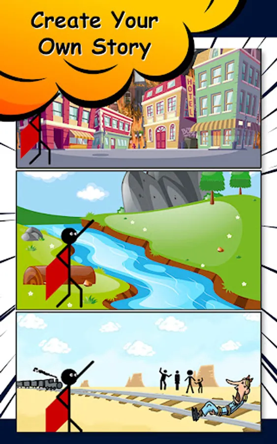 Stickman superhero cartoon maker is an application which allows users to create superman animate stick figures and story to upload on YouTube, Facebook and other social network but unlike other applications, this application allows you to create animations quickly, just move a stick in one direction and this will move up there without to do each step.