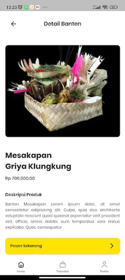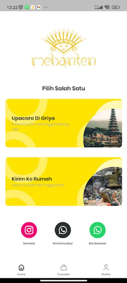 Mebanten is an application that facilitates users who want to buy offerings for certain ceremonies where the transaction process is done digitally. This is perfect for those of you who are lazy or for those of you who are busy. This Mebanten application can be a solution for those of you who don't have time to prepare for the ceremony offerings that you will carry out. With this Mebanten application you can also order relatives and even your friends. In addition you can also add more than one address in the application. This Mebanten application will immediately process your order according to the date you want, of course with the terms & conditions that apply. And immediately deliver your order on the date you want.