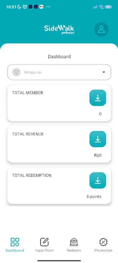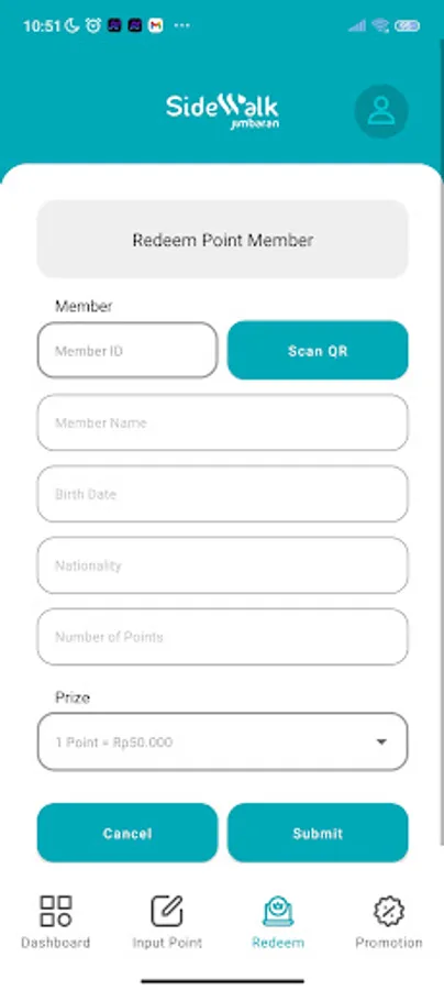 On the application dashboard, visitors can see Sidewalk Mall operating hours, view loyalty cards, and see the latest promotions from Sidewalk Mall. The Promotion feature can be used to view all available promotions, both from the Mall and from each tenant. Visitors who have shopped at any tenant at Sidewalk Mall can exchange points according to the nominal shopping value. The points earned by visitors can be exchanged for various interesting products provided by Sidewalk Mall, to find out the details of the products that can be exchanged, visitors can access the Redeem Point feature. The input point and redeem point process is very easy, visitors only need to go to the admin counter and all processes, both input points and redeem points will be carried out by the Sidewalk Mall admin.
