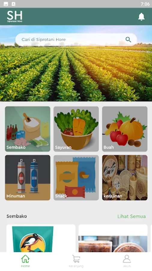 Siprotani Hore is an application that makes it easier for you as a seller who wants to sell and you as a buyer who wants to shop for basic needs such as various kinds of agricultural products at affordable prices. Are you lazy? Or is the market around your house closed? no need to be confused, you can buy all your kitchen needs using Siprotani Hore. Do you want to buy gifts for your family? Or want to decorate your home? We also present a variety of UMKM crafts with a variety of interesting choices and of course at affordable prices.