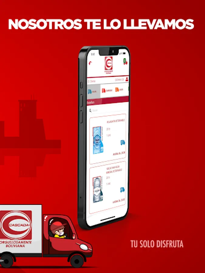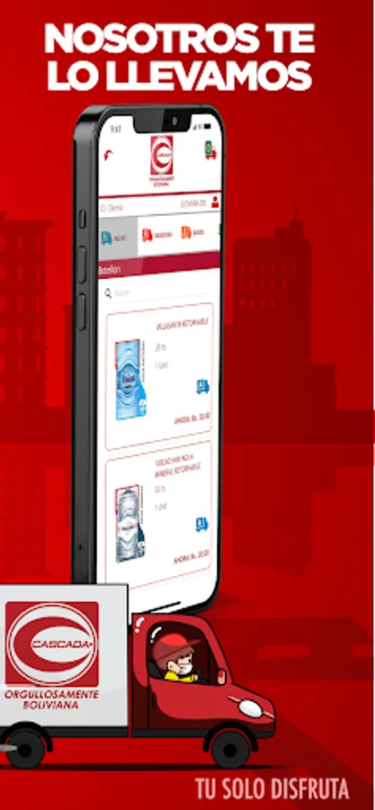 La Cascada Cerca de Ti, a mobile application that presents a complete catalog of La Cascada S.A. products, in its different categories such as Soft Drinks, Waters and Juices. Allowing the user to make the choice and purchase of proudly Bolivian products, through a digital, friendly and easy-to-use solution, with wide payment possibilities such as cash payment and payment by electronic means, which also presents the additional value for the delivery of the selected and purchased products in the comfort of the users' home.