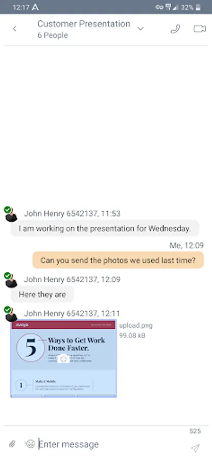 • Conceal Your Mobile Phone Number - Calls made with Avaya Workplace™ are handled by your office communication system and will display your office calling line ID, not your mobile phone number