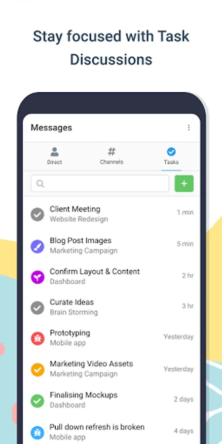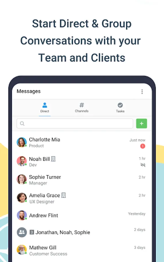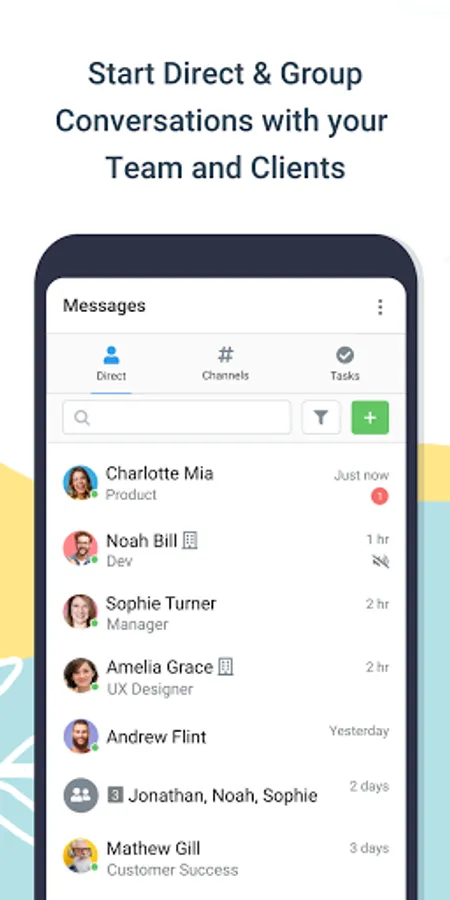- Direct or group conversations: Start a direct 1-1 or small group conversation for quick turnaround.