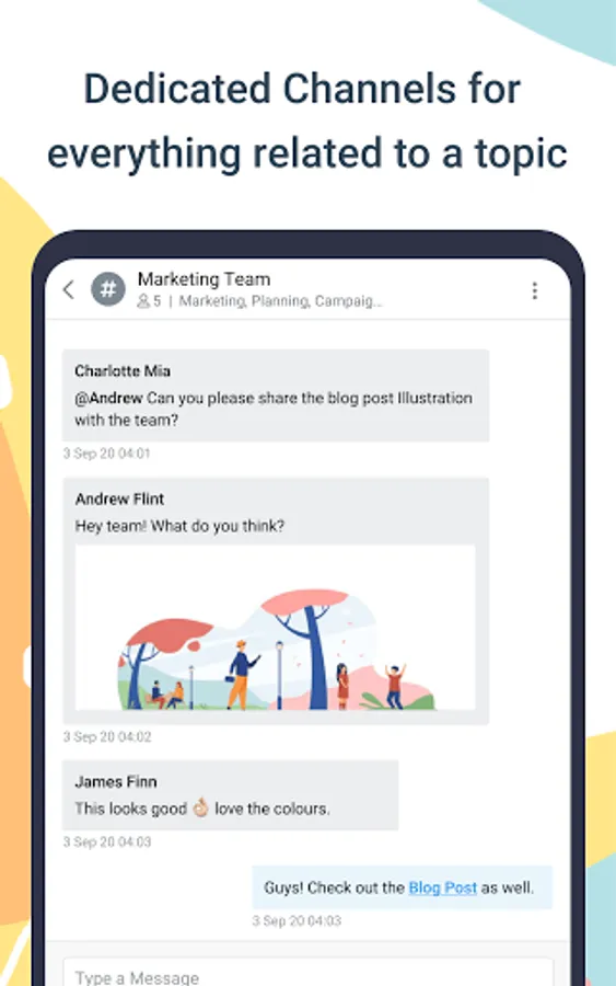 - Channel Chat: Communicate with your team in channels and organize your conversations by department, project, client or any other topic relevant to your business.