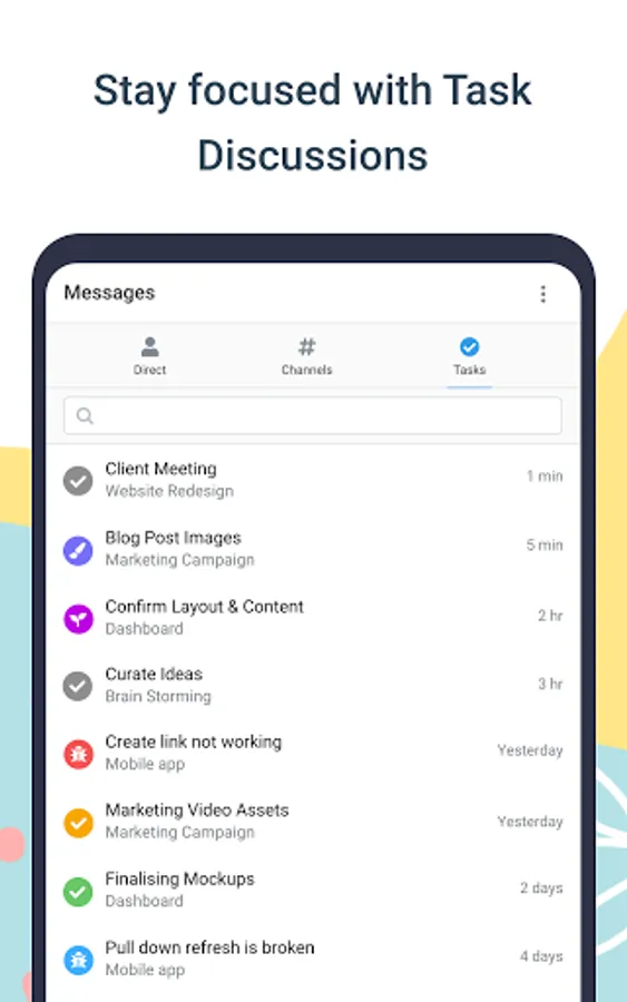 Avaza offers a lot more than just chat. Avaza is the all-in-one platform for running client-focused businesses, with modules for Project Management, Collaboration, Resource Scheduling, Time Tracking, Expenses, Estimates & Invoice Management. Below are some of the high level features you may find useful.