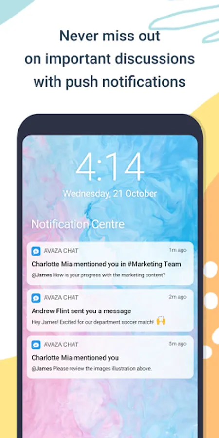 - Push Notifications: Never miss out on important discussions with push notifications. Mute individual chats or customize your notifications settings.
