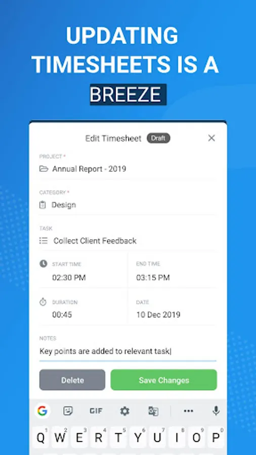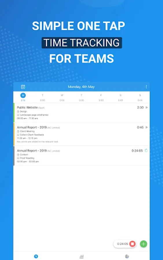 Avaza Timesheets is a simple yet powerful time tracking app for teams. You can start a timer with a single tap, fill in essential details and browse through each day's time entries by swiping left or right. Tracking time has never been easier!