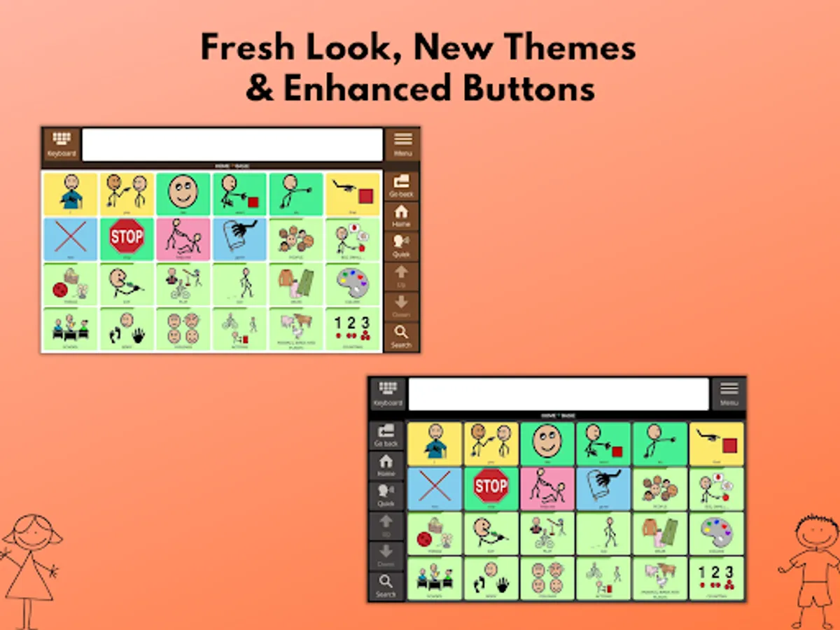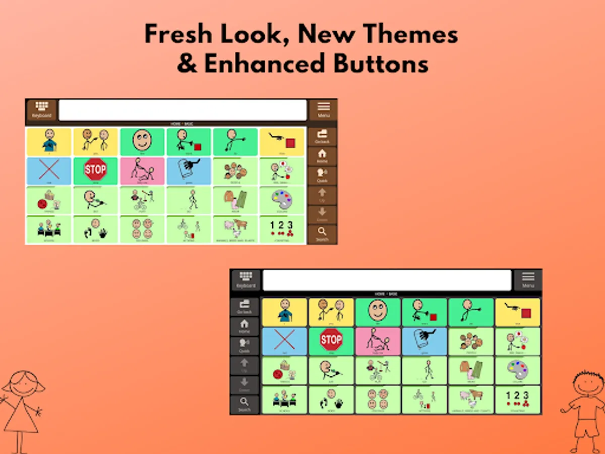 Avaz gets a visual upgrade with new themes -Classic Light, Classic Dark (with high contrast), and Outer Space (a dark mode). The dark mode is especially useful for adult users and those using Avaz with eye-tracking devices.