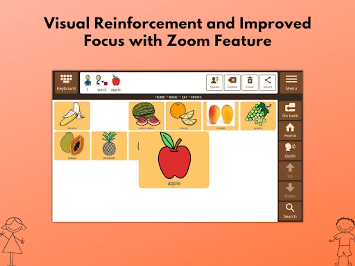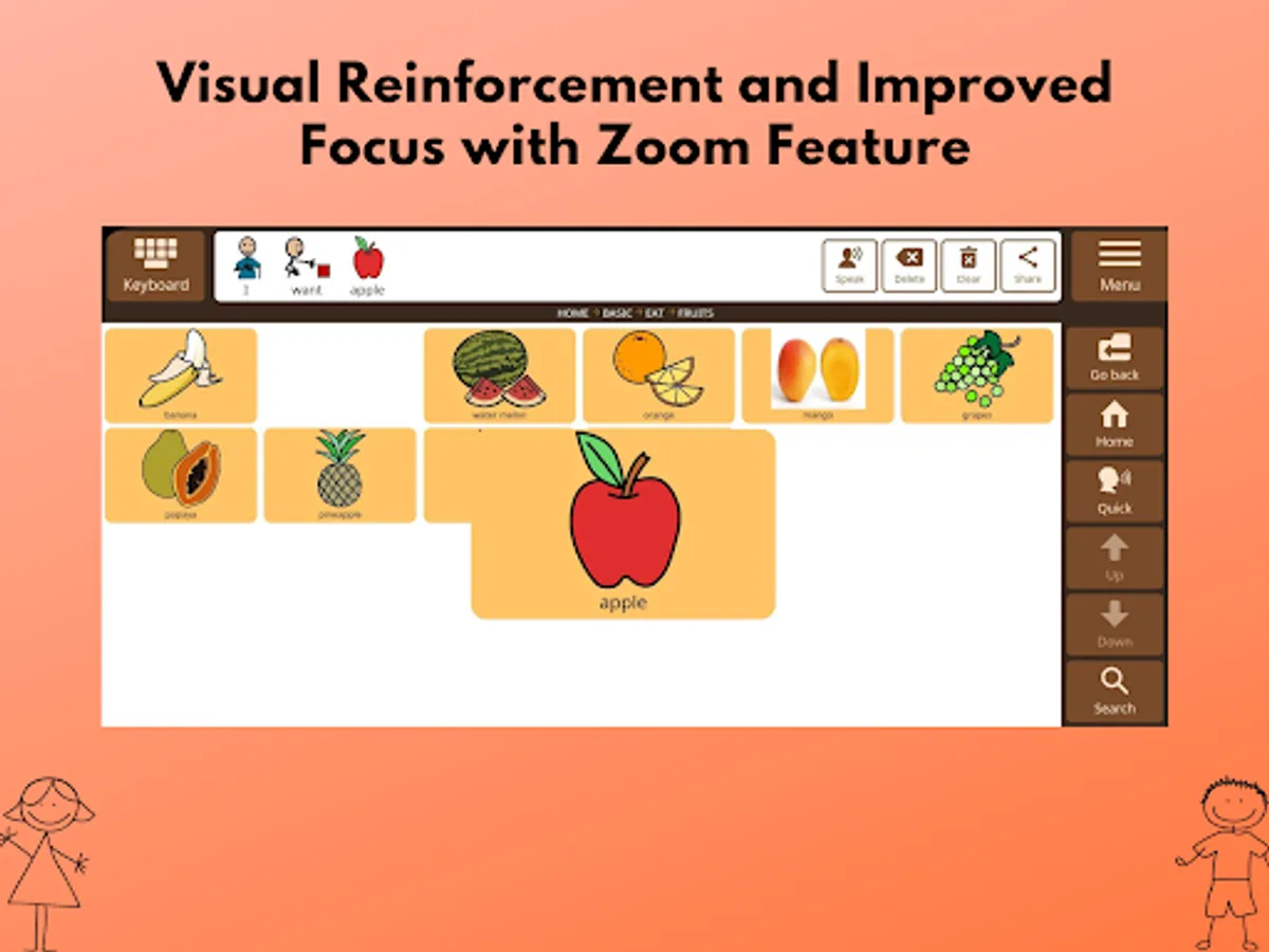 With a huge research-based vocabulary of over 40,000 pictures, Avaz creates the best opportunity for individuals to develop and improve their speech. Starting with a simple touch of words and progressing to learning to create sentences, users can express themselves at any place and at any time.