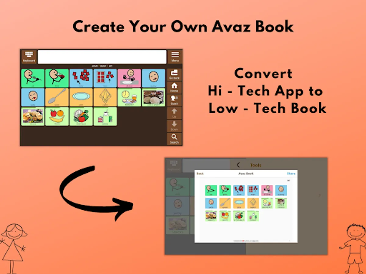 Additionally, Avaz lets you create and print your own Avaz book to use at any time.With regular app updates and support tools, Avaz evolves with every transition the user experiences.