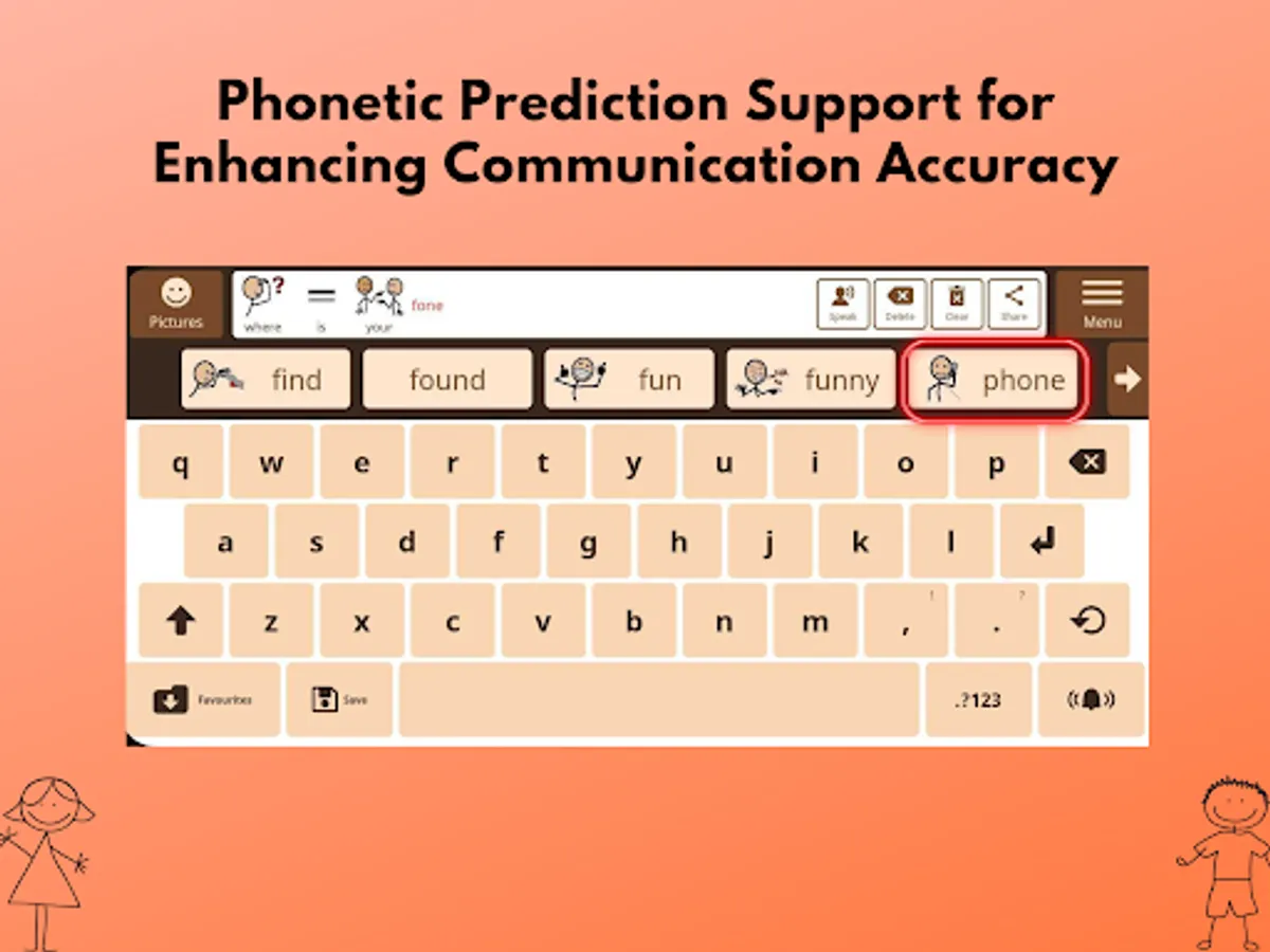 Prediction of words and phrases along with predicting the present and following words, as well as options for phonetically spelled words.