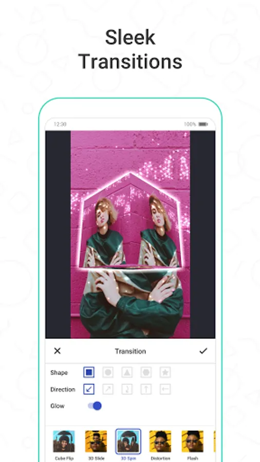 TRANSITIONS: Awesome transitions for your edits that you can add with a single tap! We have the best video transitions to wow your followers. Just add your pictures & videos and just by using a few taps you create a cool video with professional looking video transitions.