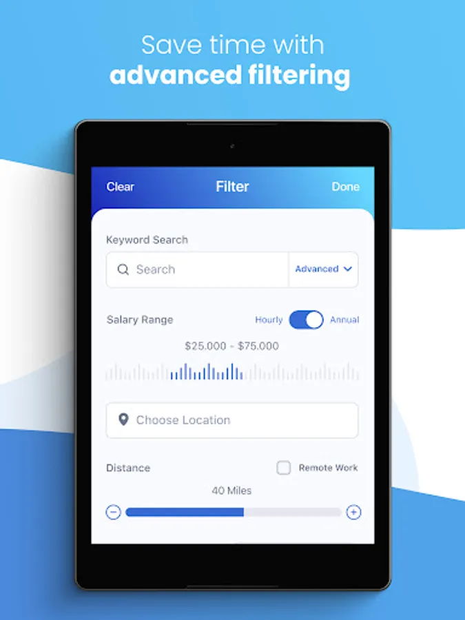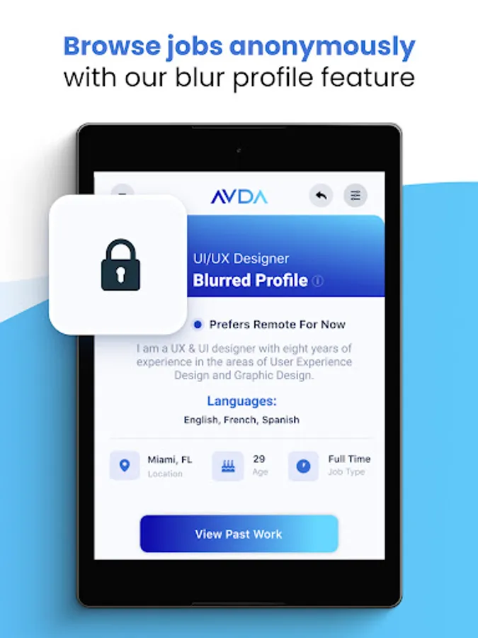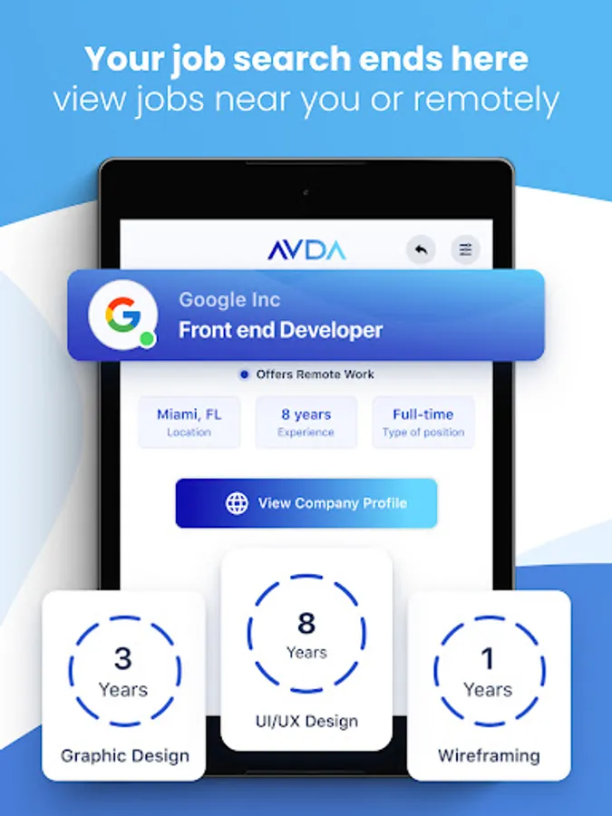 Using a simple swiping mechanic, AVDA provides a mobile-friendly way to browse job vacancies. View all the information you need at a glance, such as pay, required experience, whether it is remote work and more.