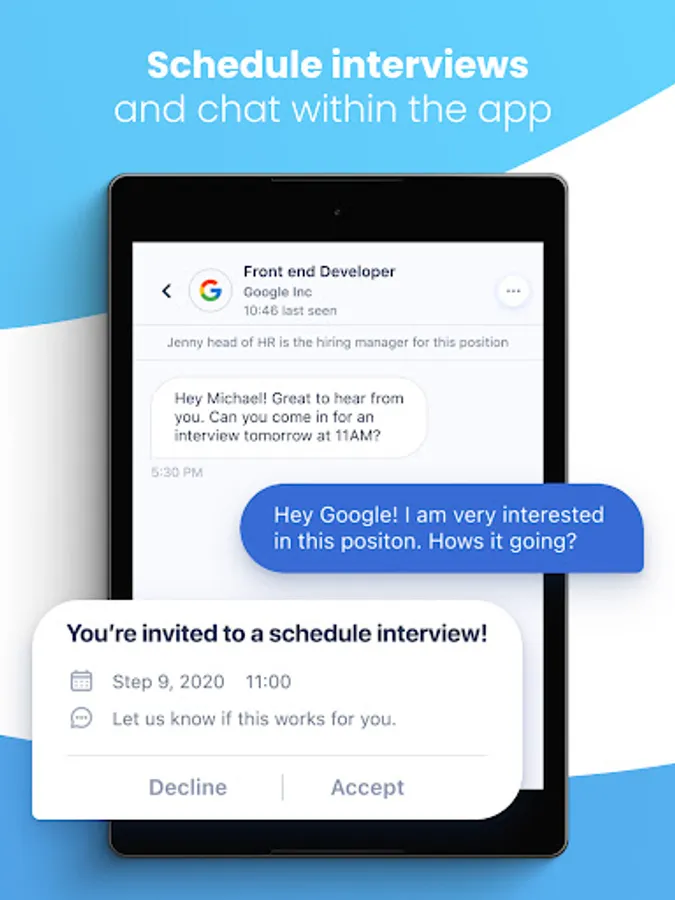 If both the candidate and recruiter accept the match, you’ll be able to message each other to discuss further job details and schedule meetings or interviews.