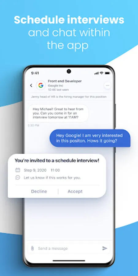 View your messages, scheduled interviews and ongoing job applications in one place so you can easily keep track of the recruitment process.