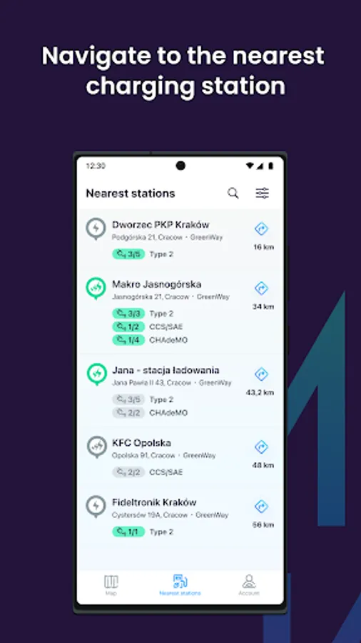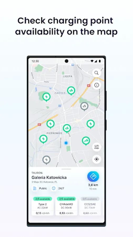 Includes stations of Poland’s major operators: GreenWay, GO+EAuto, Elocity, Energa, EVplus, Innogy, Lotos, Noxo, Orlen, PGE Nowa Energia, RAWICOM, Tauron and many more.