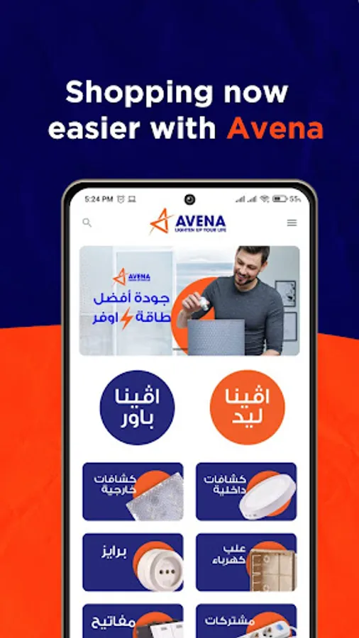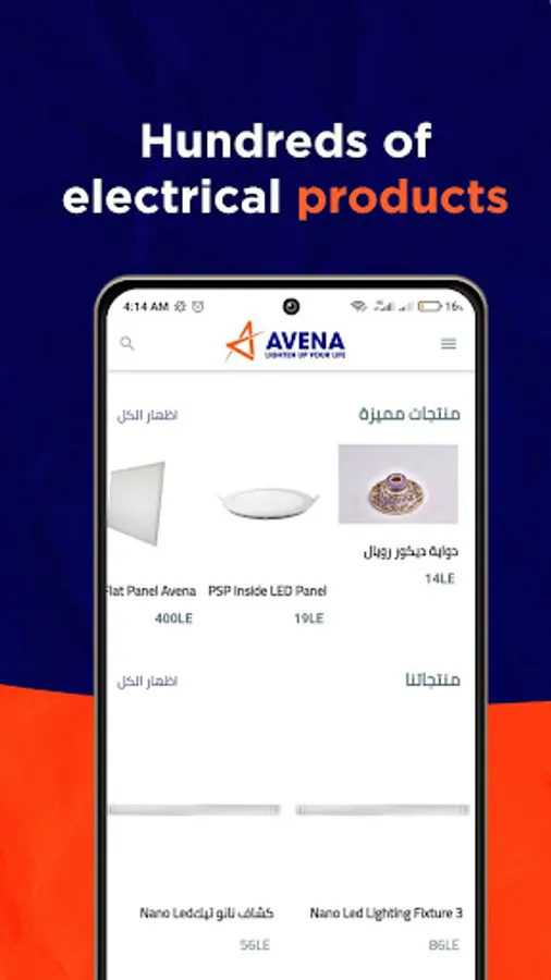Buying Avena's products much easier and this will be the first Egyptian electric brand to buy online. The customer can buy just one bulb and pay it online and deliver it to his door or can buy hundreds of bulbs and also deliver it on the door. So there is no limit in buying on the app.