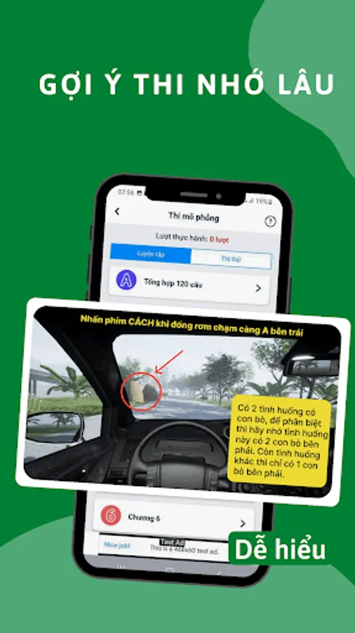 120 questions simulating the driving license exam (2022) are applied nationwide for the license classes B1, B2, C, D, E and F….according to Circular 04/2022 of the Ministry of Transport so that learners can improve their problem-solving skills.