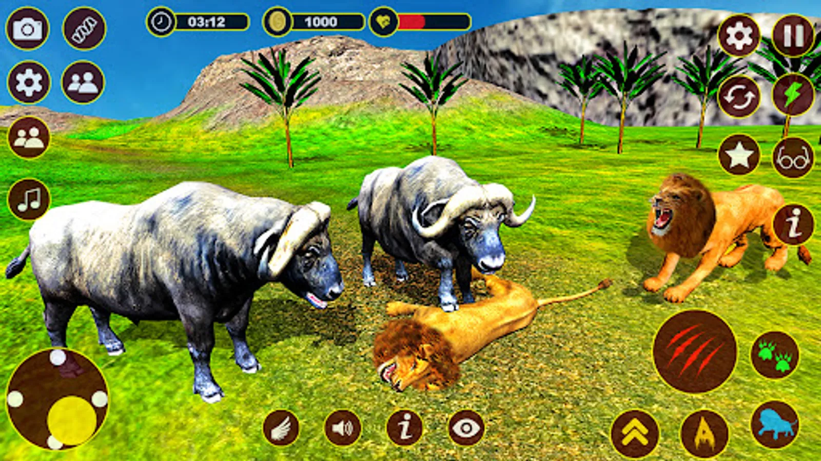 If you want to go for wild animal hunting then this lion simulator game is your animal hunting destiny where you play role as angry lion and fight with other wild animal like lion tiger, elephant, bear, zebra, crocodile and other wild jungle animals. But the most interesting part lion attack game is when two jungle king are face to face like lion and tiger fight. Wolfs are showing their strength in jungle and attack on lion baby in this mission you are the king of the beasts so play role like a warrior and fight with wolf and hunt them. This is not the end Lion fight game have more missions like other wild animal games.