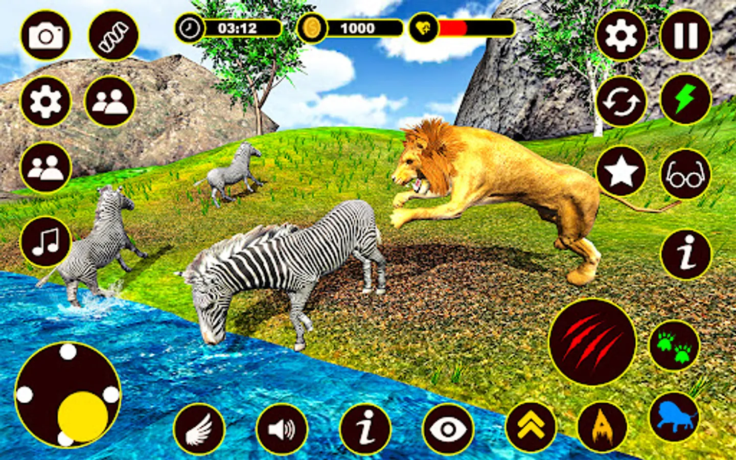 There are different characters links African lion and some others. Select your warrior and complete your task like feed your lion family, drink water, lion attack and hunting in this wildlife game.