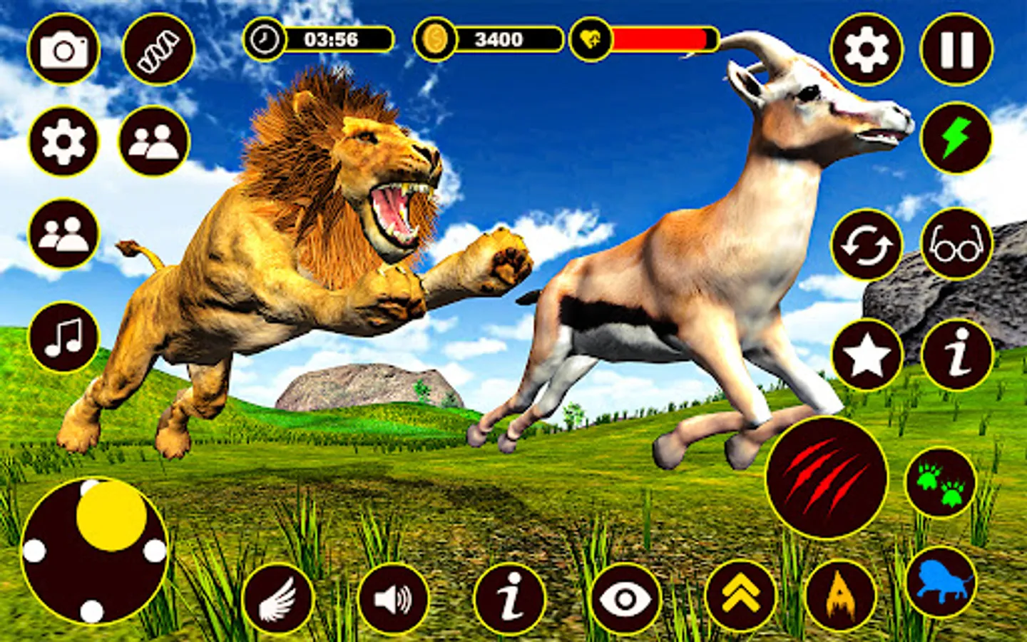 Lion family simulator is specially design not only for loin tiger fight this is also lion jungle game where your lion attack on different animals like stag, rabbits, giraffe. Your player is your big cat so first hunt for your self and then hunt for your clan link animal survival game.
