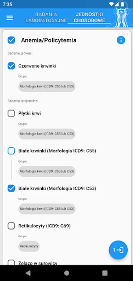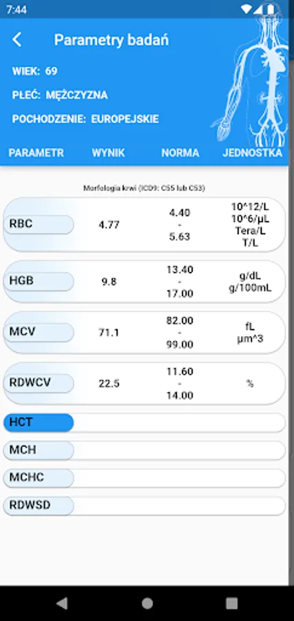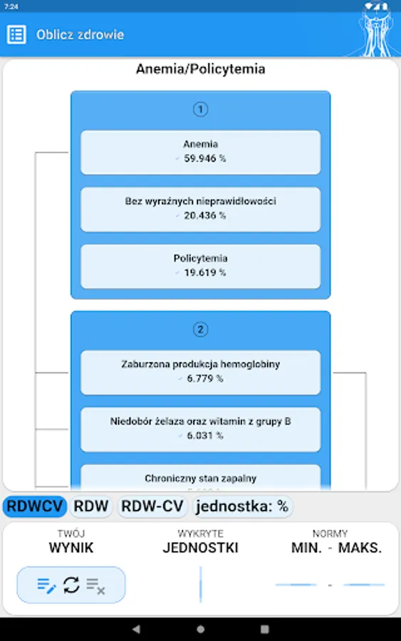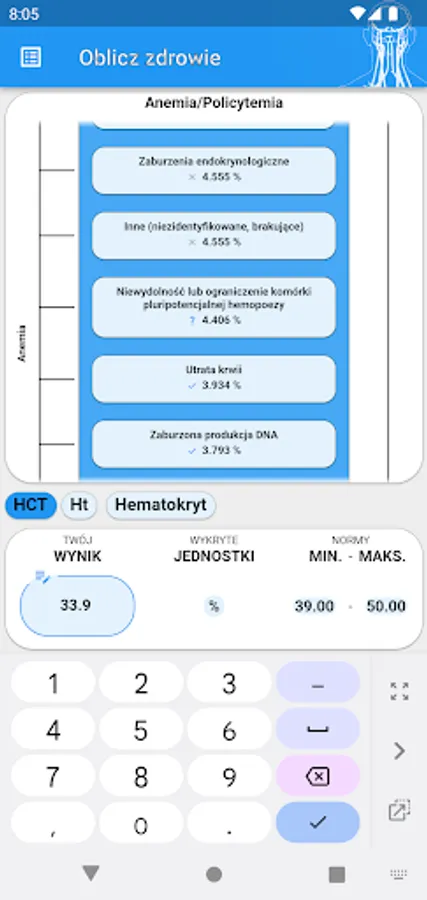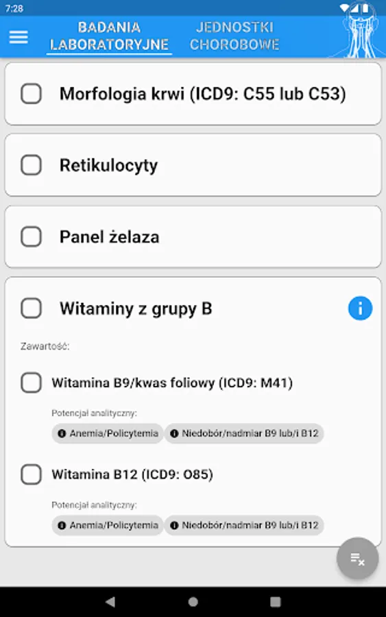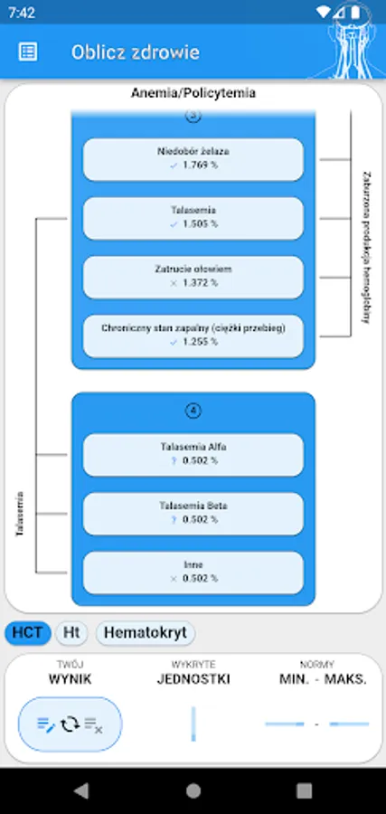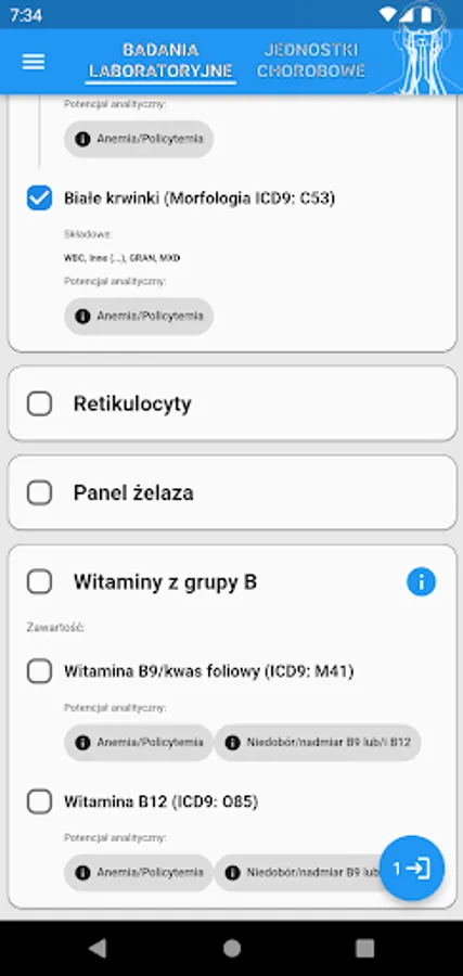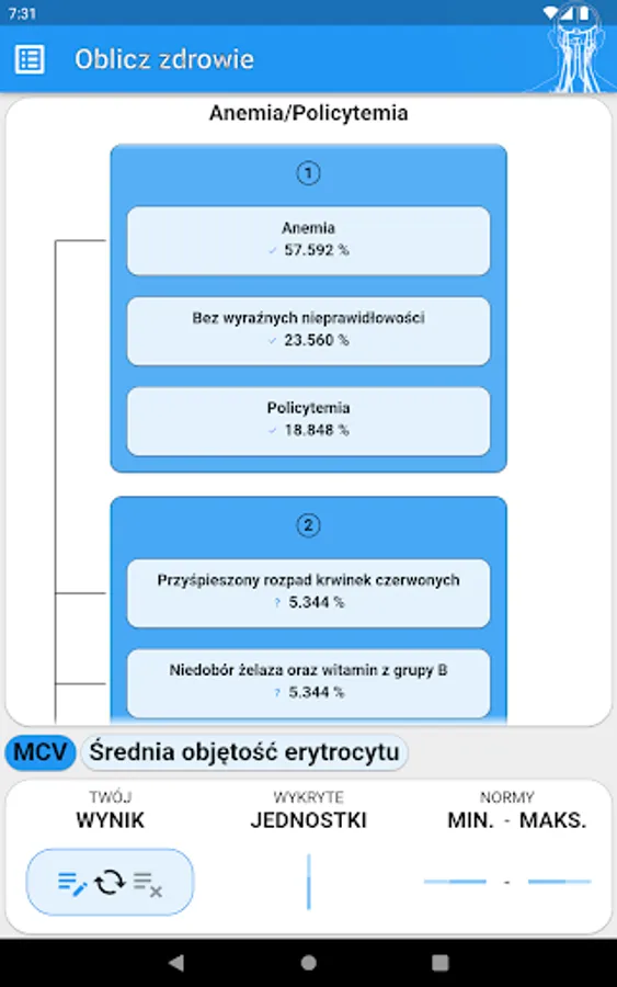 Based on the results of laboratory tests, the application provides educational and informative information about the probability of disease entities, disorders or deficiencies.