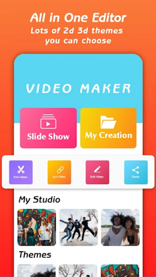 All you need to do to create great videos is: Choose photos. Add music. Set effects, time. Save videos, slideshows and share them with friends. Photo video maker is the easiest way to create music videos.