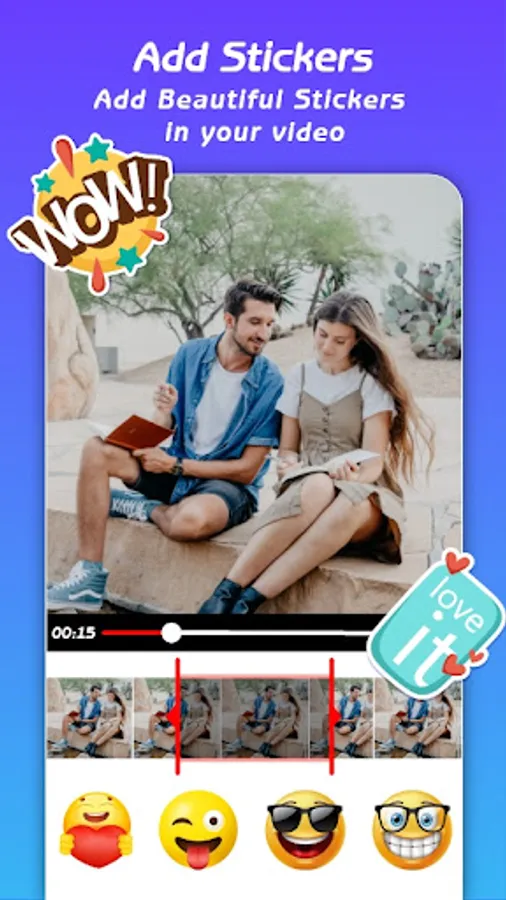 * Music: The app provides melodies that match every video theme. You can also add your favorite songs and music tracks from the device to make your videos interesting and engaging.