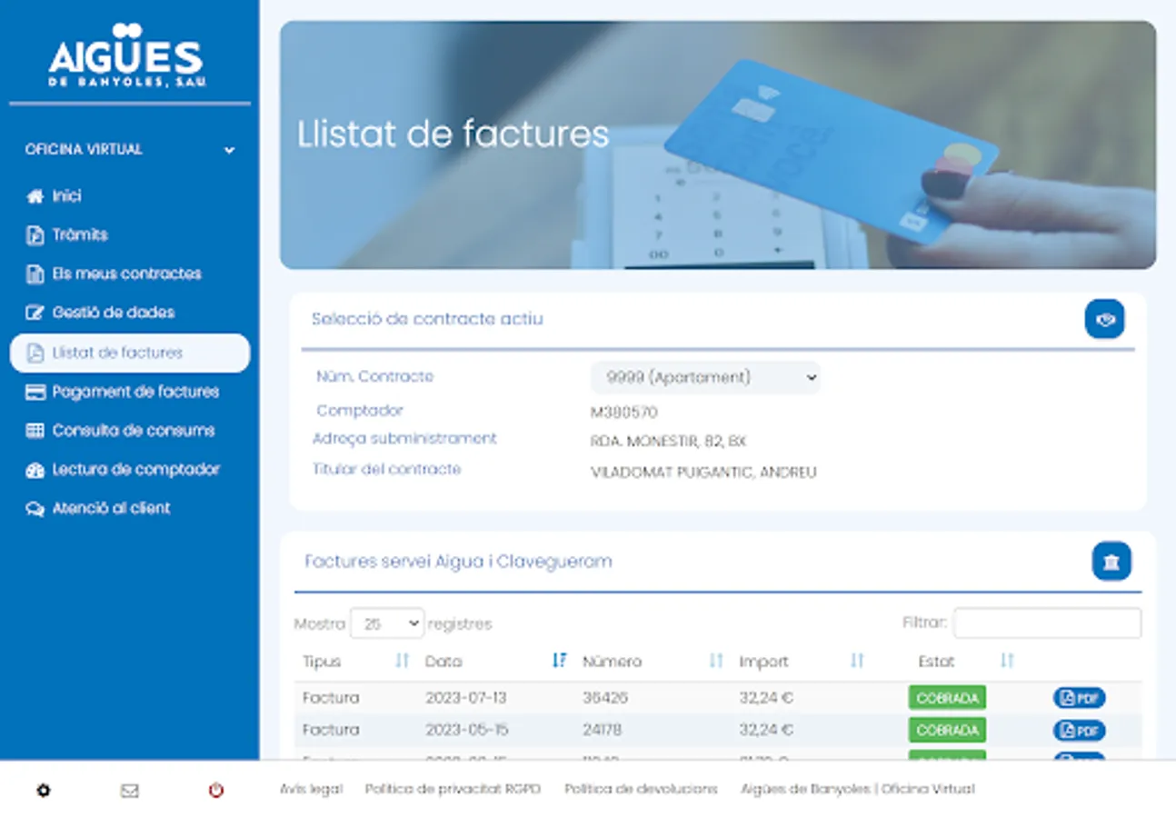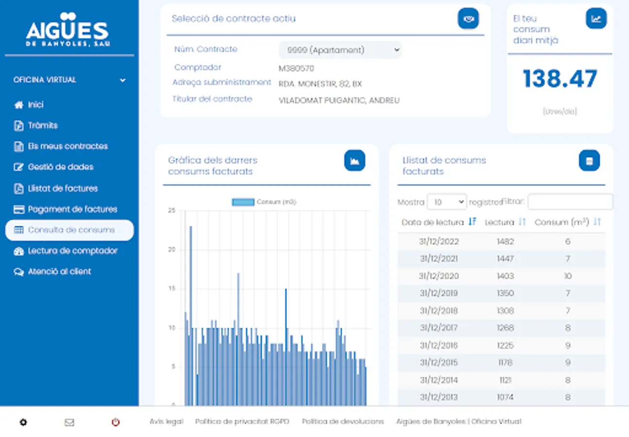 Virtual Office of the subscriber of the Banyoles water supply service.