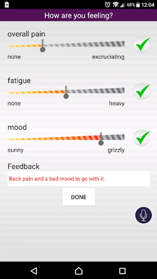 Pain Clinic can only be used by account holders. Use the rating scales to report on your feelings, symptoms and everyday well being with minimal effort required.
