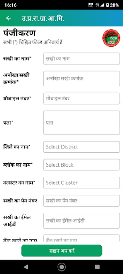 Each Sakhi has to do one time registration on the application with her relevant details.
