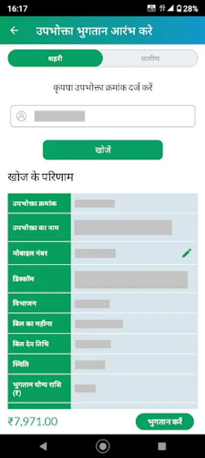 Post registration, Sakhi has to login for bill collection where she needs to enter consumer id to fetch bill details and further she needs to initiate payment with electricity bill amount