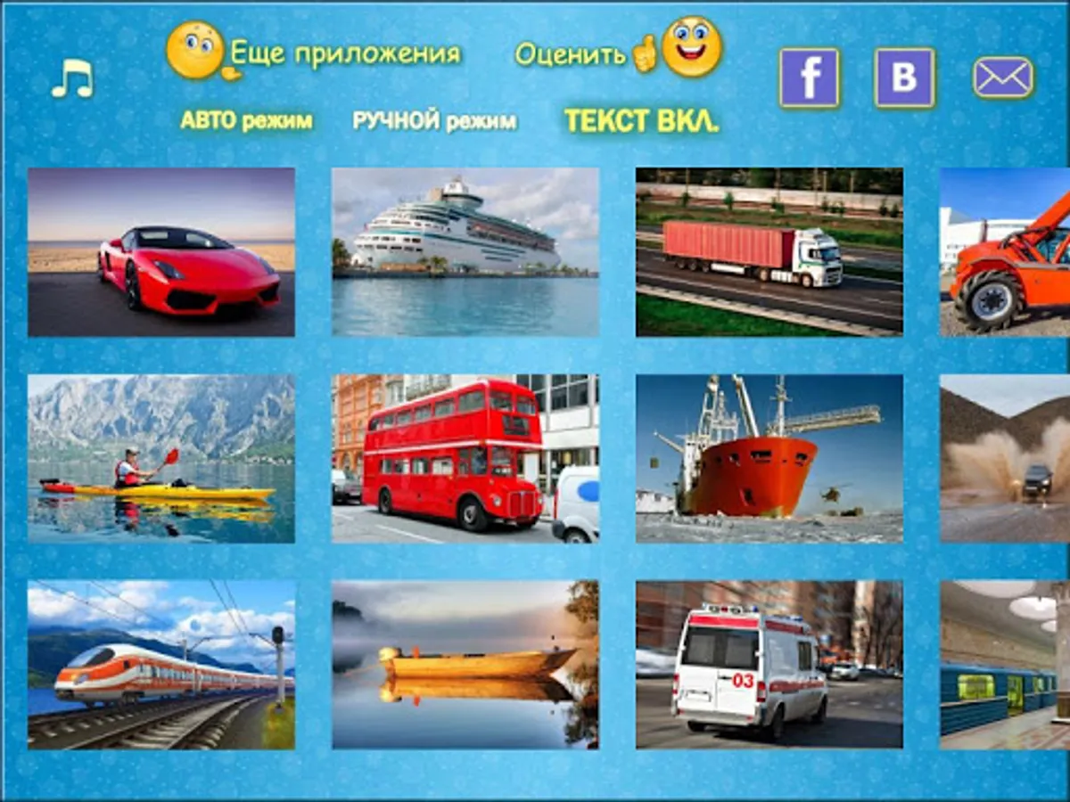 Only the highest quality photos and friendly communication! Test your child's knowledge. After completing the application, children will learn a lot about "Vehicles".
