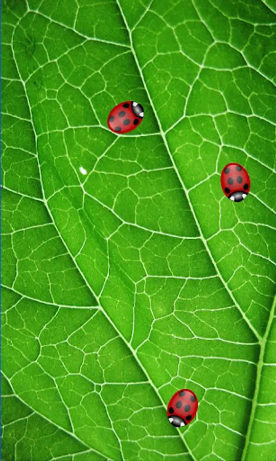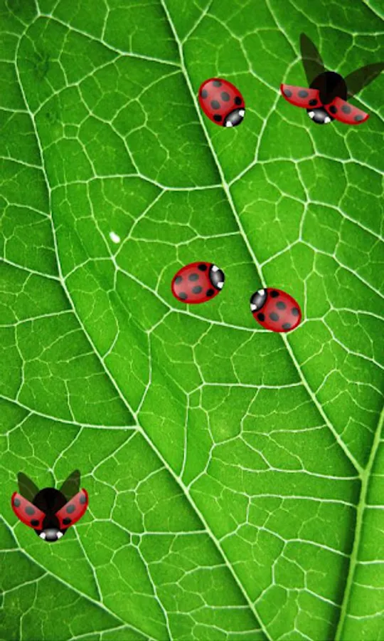 Live wallpaper with red ladybugs walking and flying over the green background. If you touch a ladybug, it will start flying. Touch the ladybug again and it will start looking for a spot to land. The speed and activity of ladybugs is customizable. In addition, you can select the number of ladybugs you'd like to see on your screen.