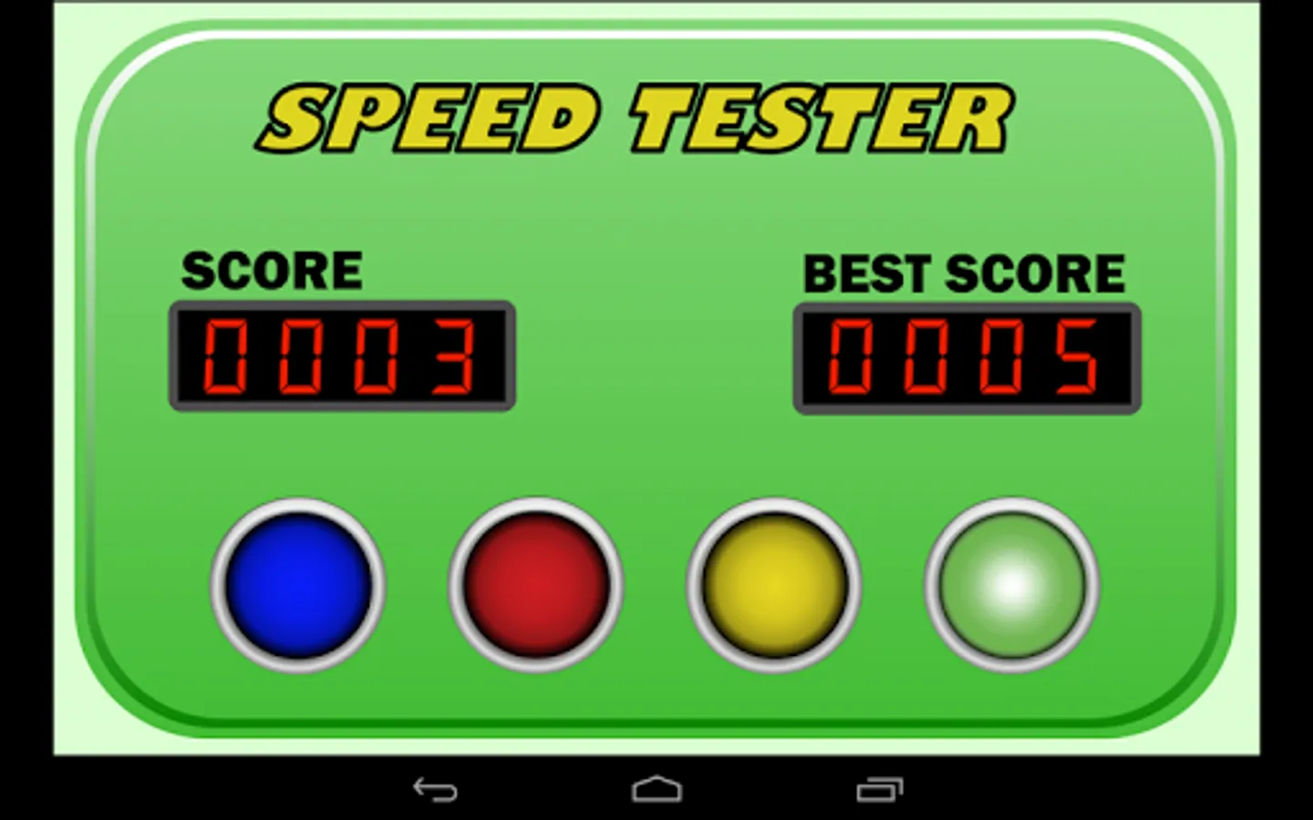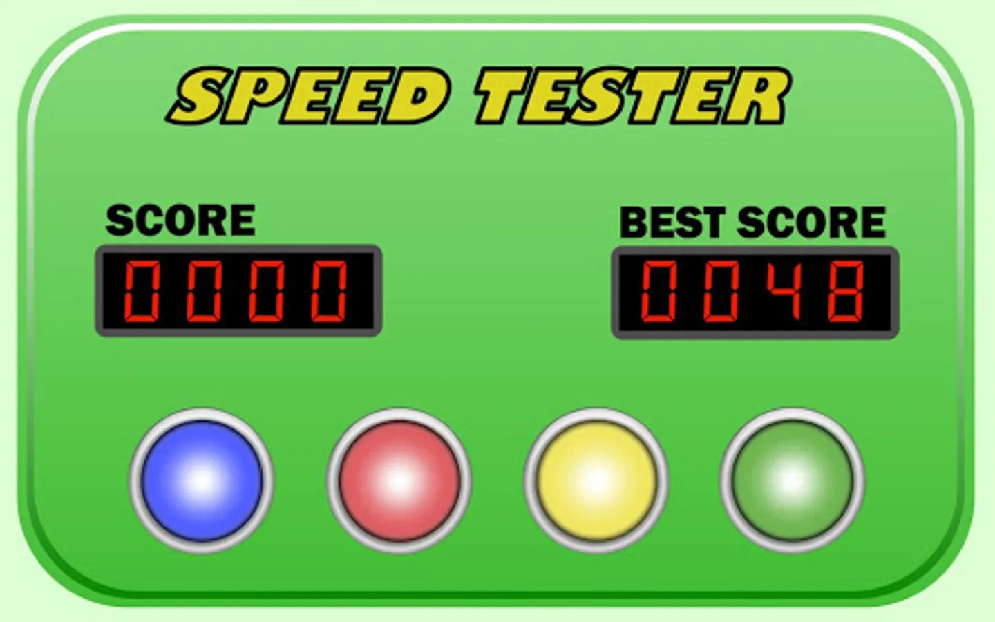 Speed Tester is a simple speed test game. Your aim is to hit the flashing buttons in the same order as they light up. It will be easy in the beginning but the pace speeds up as the game progresses. Be careful, if you press the wrong button the game is over!