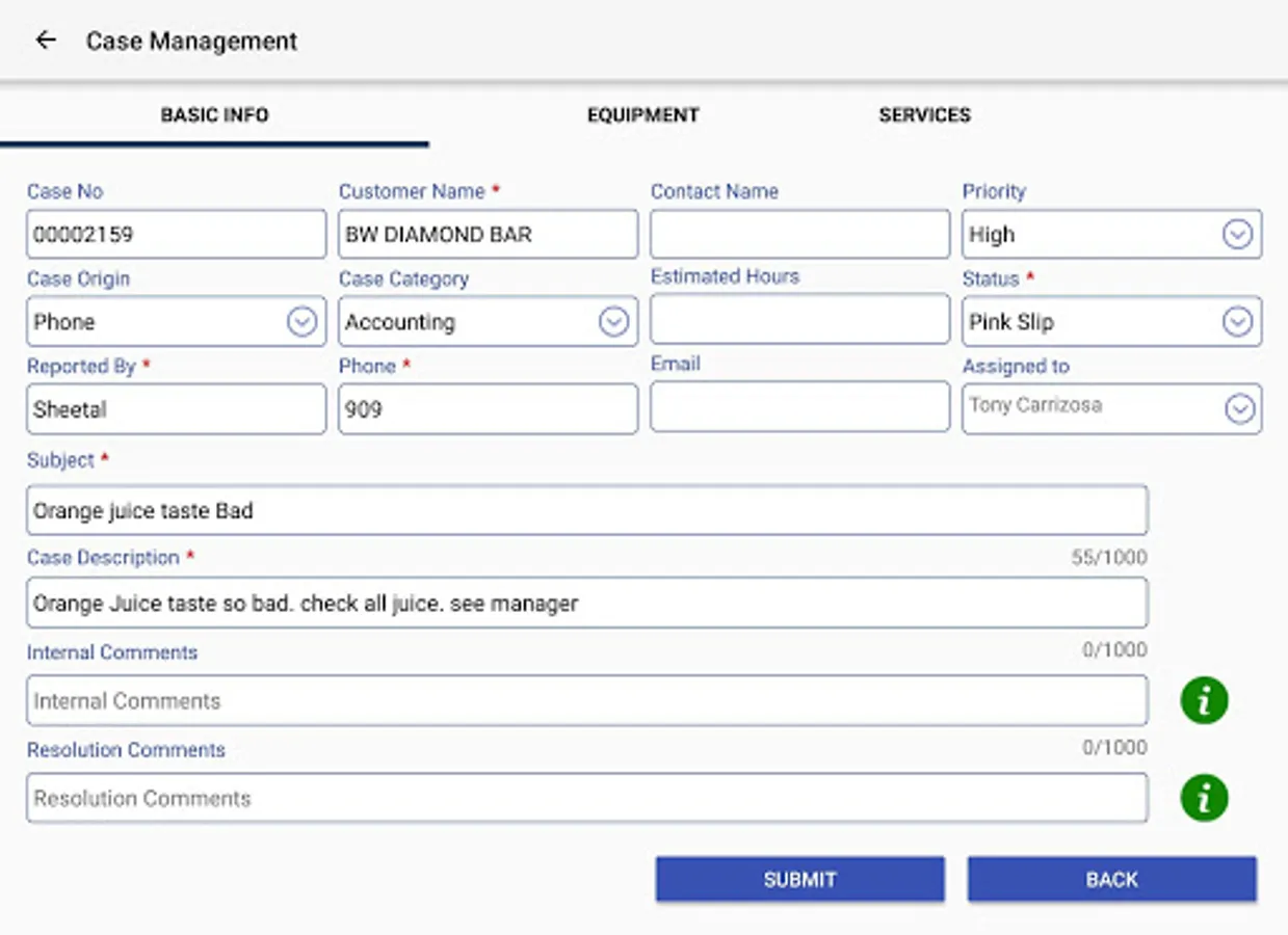 With our Cases Management module, you can add and update Cases, view and filter information, configure the status, and priorities, view customer details, distance to the customer location, notes, equipment, past service history and much more.