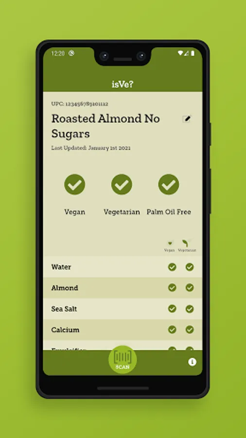 IsVe? is simple to use. All you have to do is scan your UPC barcode on the package of any food or drink product. You will then see;