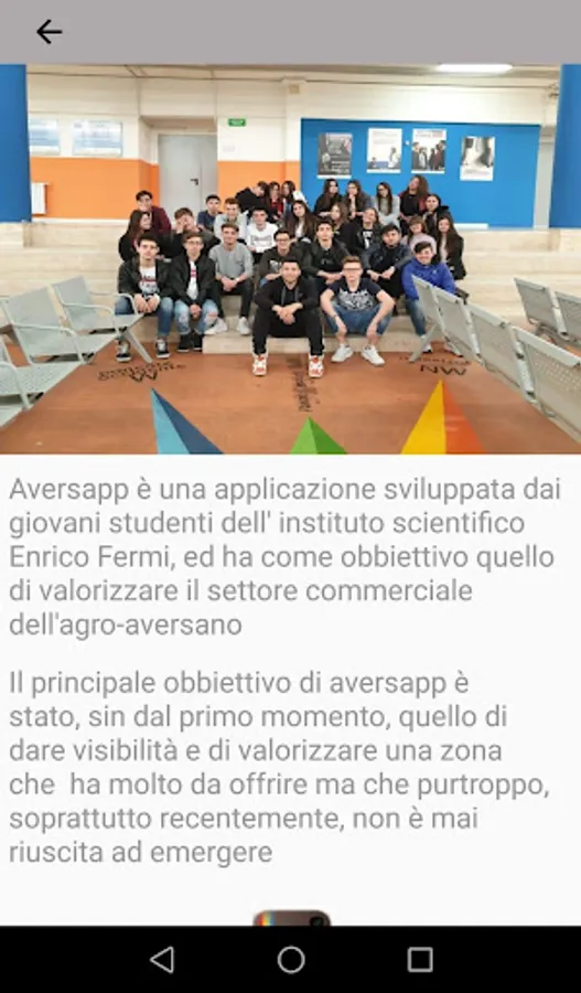 Aversapp is an application developed by the young students of the Enrico Fermi scientific institute, and has the aim of enhancing the commercial sector of the agro-aversano area.