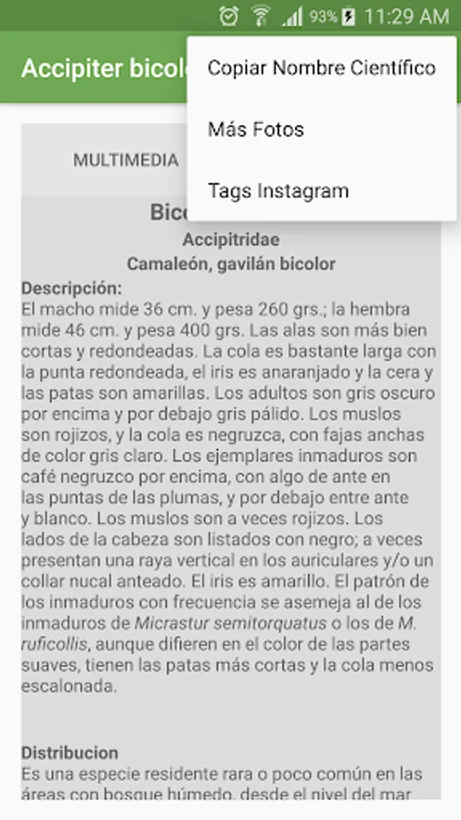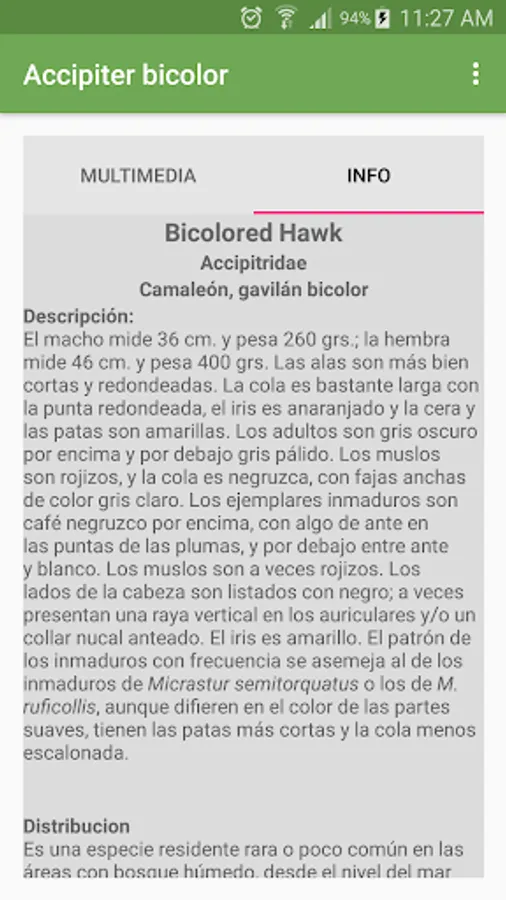 ★ Customize bird song (In the internal memory of your device there is a folder called AvesCR include the song of the species, the file must be mp3 and with the name of the bird Ex: Accipiter bicolor.mp3)