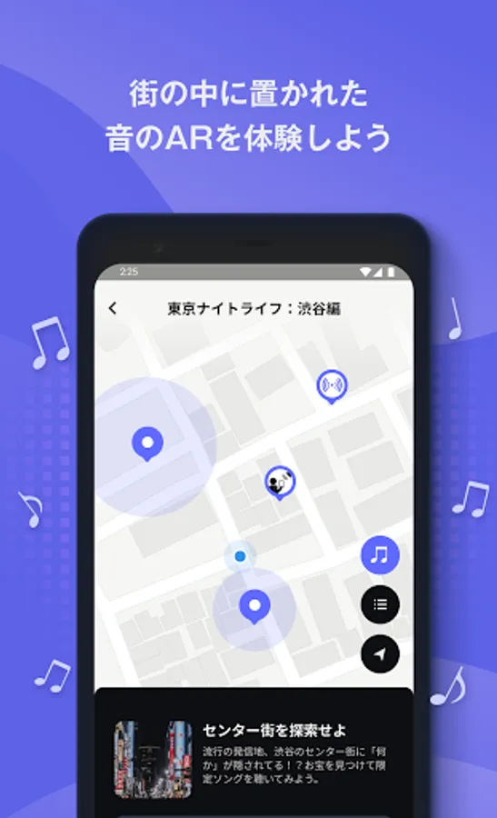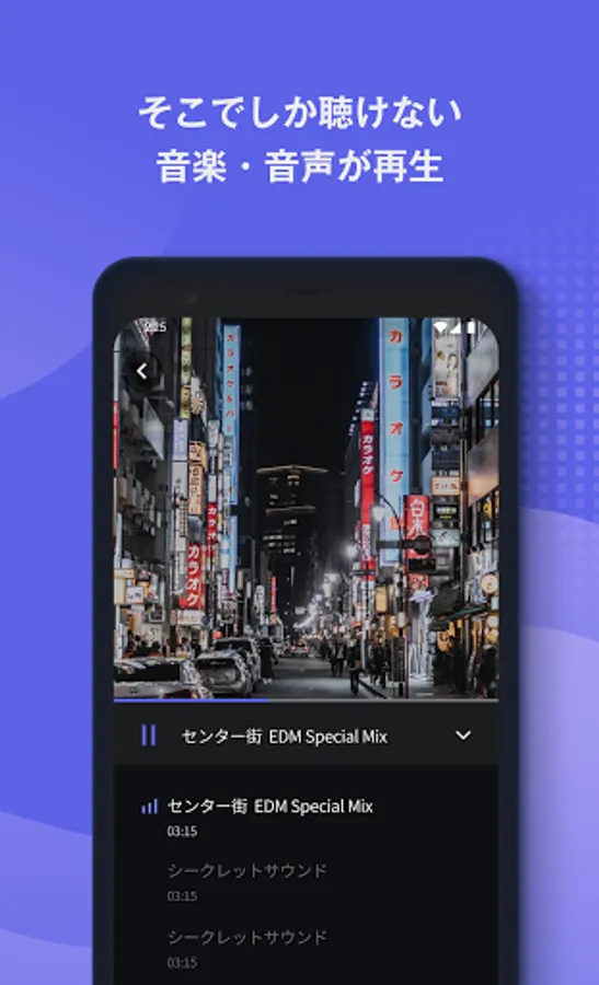When the app enters the audio spot, audio content that can only be heard there is played.