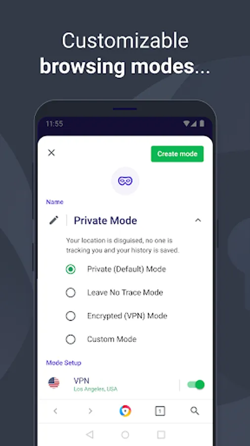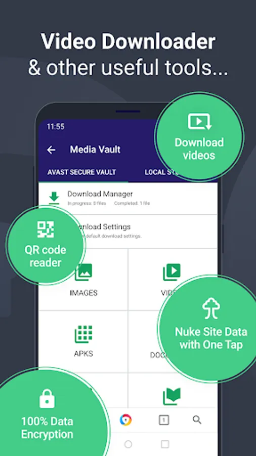 Most other “private browsers” don’t actually make you invisible. AVG Browser is a next-level secure browser with powerful tools that actually keep you private. Features like built-in VPN, automatic ad blocker, total data encryption, unique PIN lock, and more.