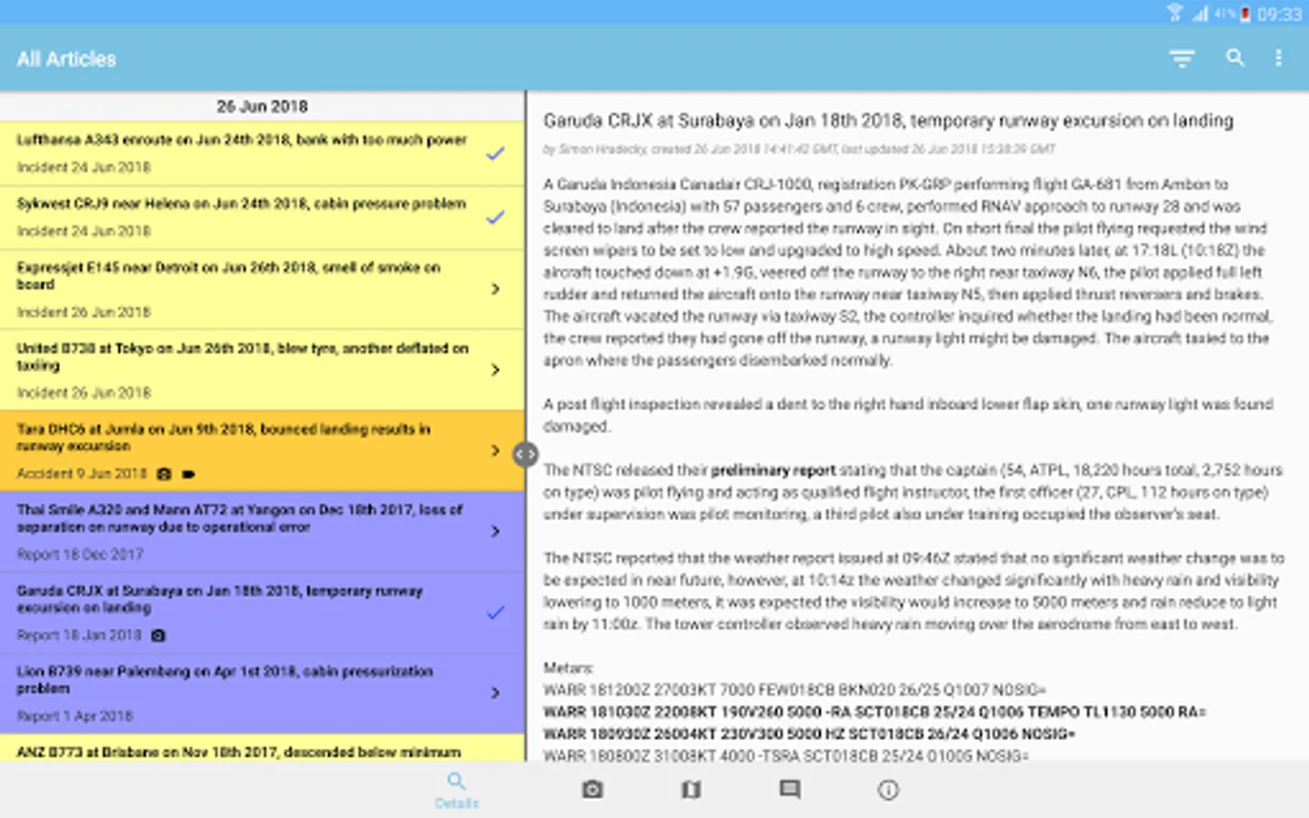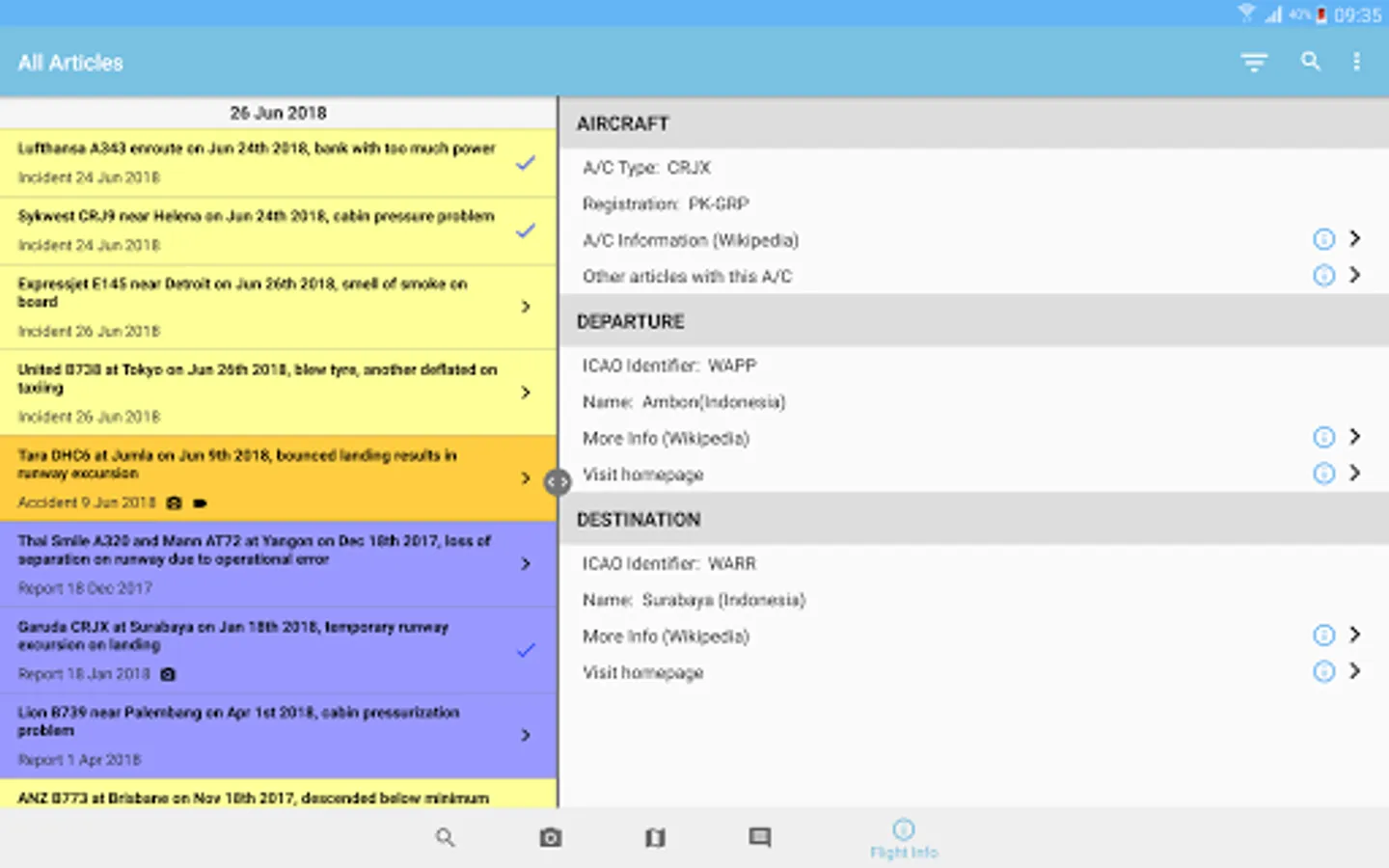 The Aviation Herald provides coverage of safety relevant incidents and news in air transport category aviation