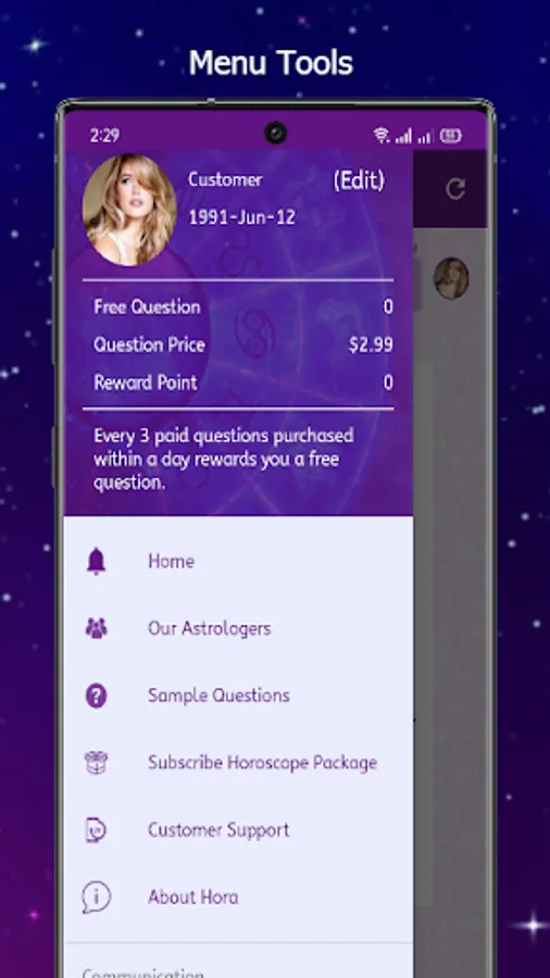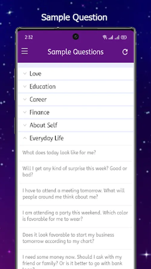 Download the app and enjoy a free question as a welcome bonus and stay connected to keep track of your upcoming future. You will be getting numerous offers and gifts while using the app.