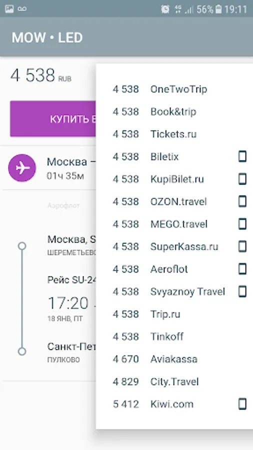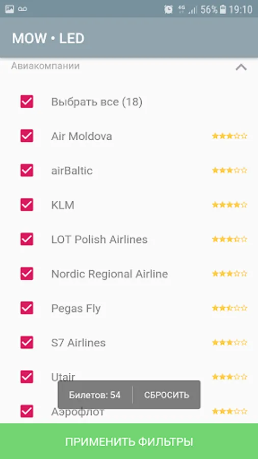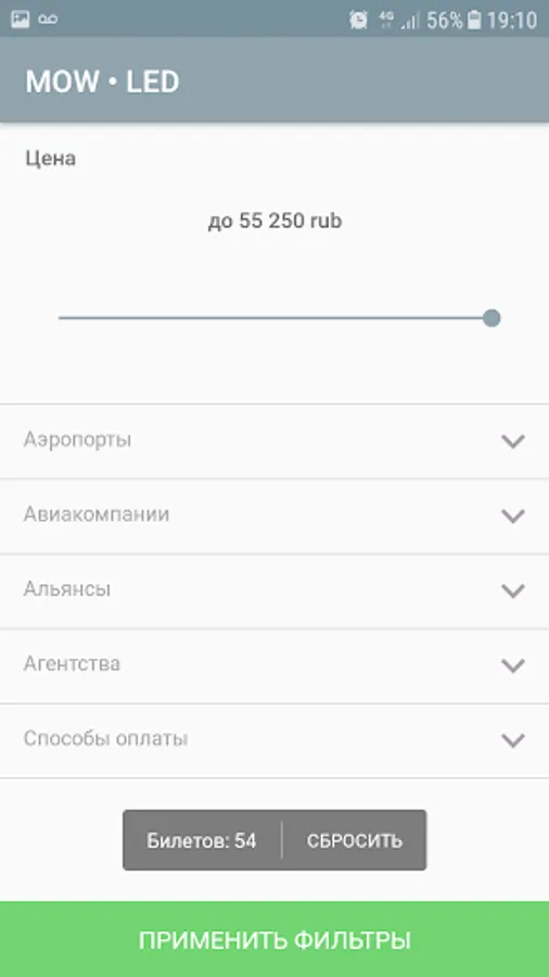 The application does not sell airline tickets, but only helps to choose the most suitable option from all tickets by price, time, number of stops, airline, etc. When a ticket is selected, you will be redirected and will need to pay on the official website of the airline or on the travel agency.