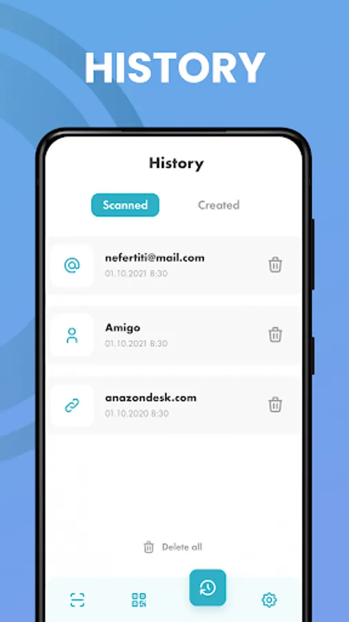This QR scanner app will let you scan and read any barcode in a second. Thanks to this barcode reader and QR scanner you will feel comfortable in any environment and will be able to obtain any necessary information in the shortest possible time.