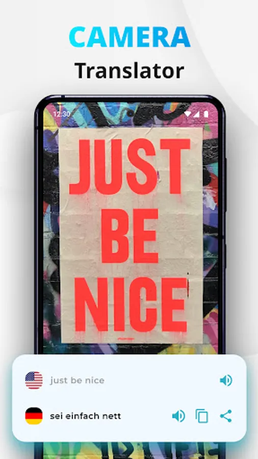 - The app has a smart OCR feature which enables you to translate any text directly using the camera.