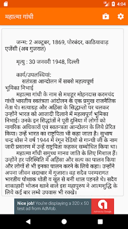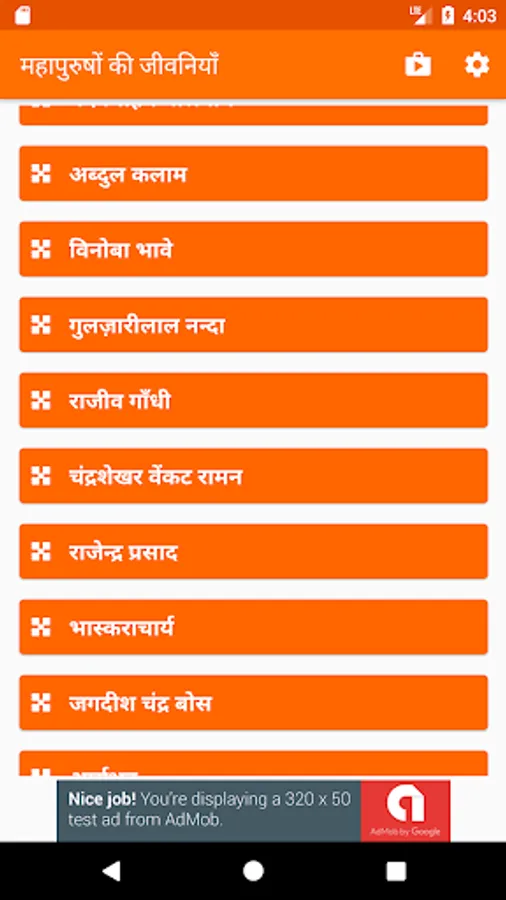 This app contains Biographies of some notable Indian personalities who devoted their life to make life better of People of India and world.